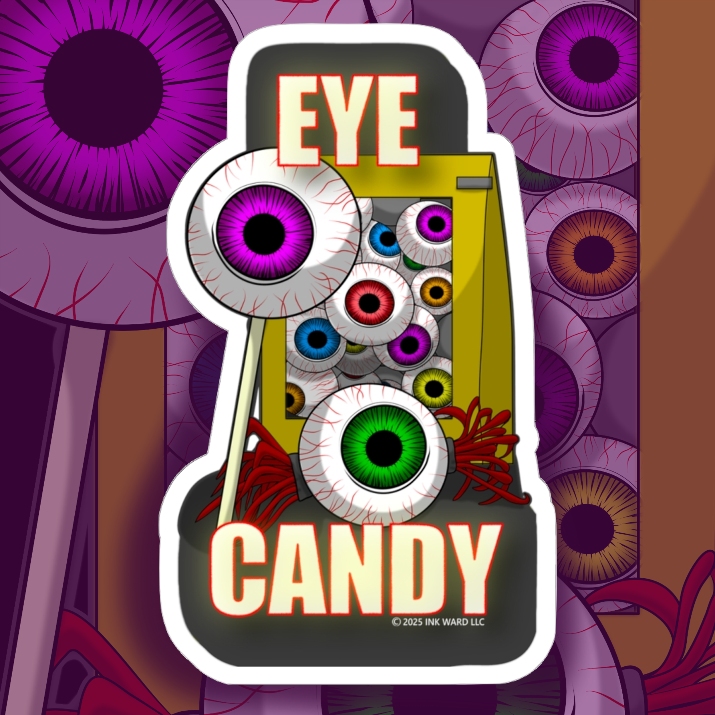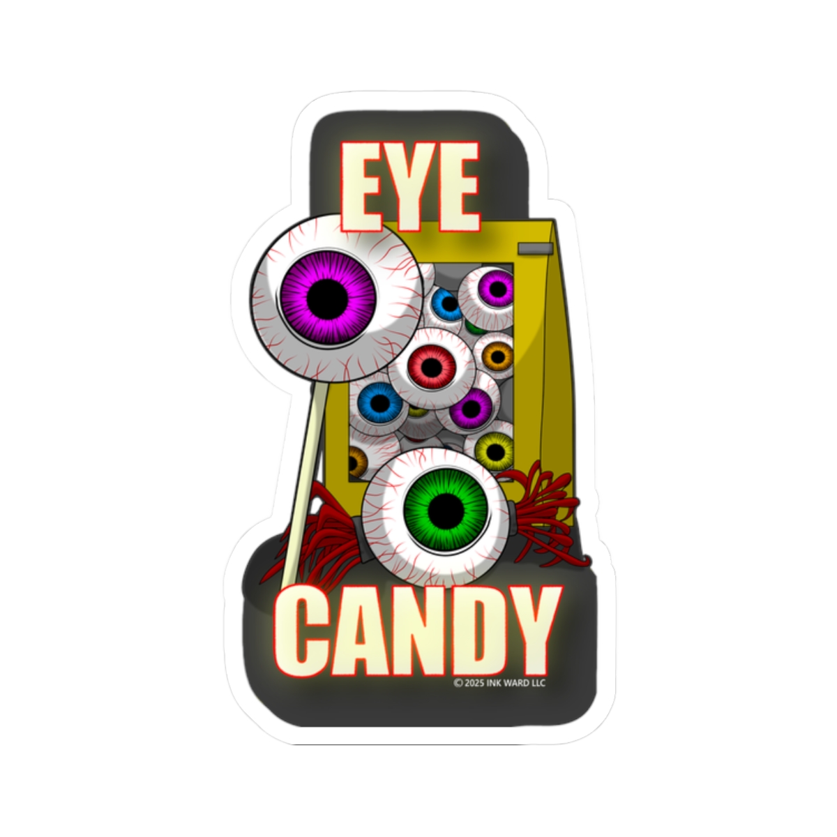Feast your visuals on the “Eye Candy” sticker! Perfect for literally everything!